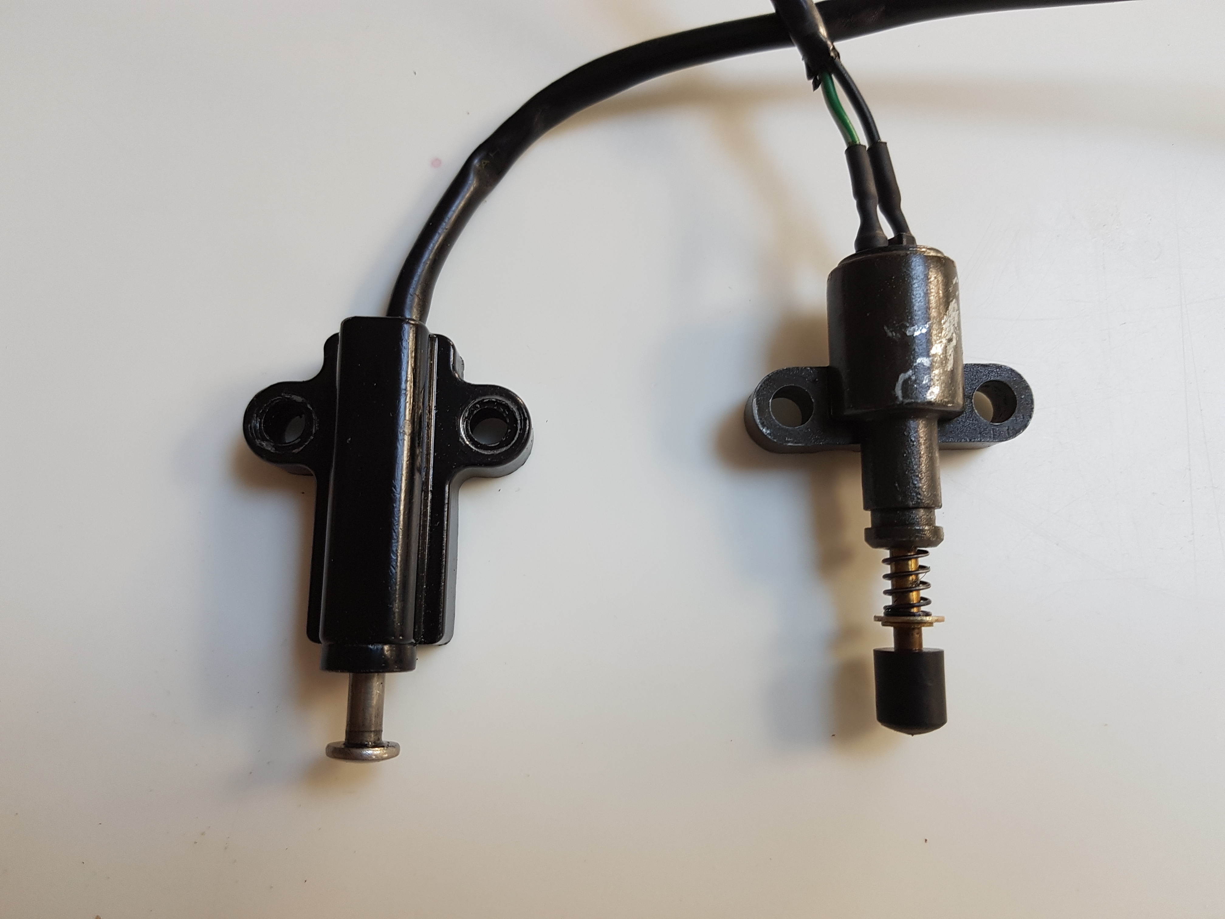 I'm adding a side stand switch/warning light to my pop-up. I have two switches, both of which came from 750ES bikes that were being broken (I think!) but the switches are quite different and only the one on the right seems to work correctly. The one on the left fits the bracket perfectly, but is a 'normally open' circuit - so the warning light comes on when the stand goes up. Does anyone know what this switch is for? Or what it comes off? Thanks!