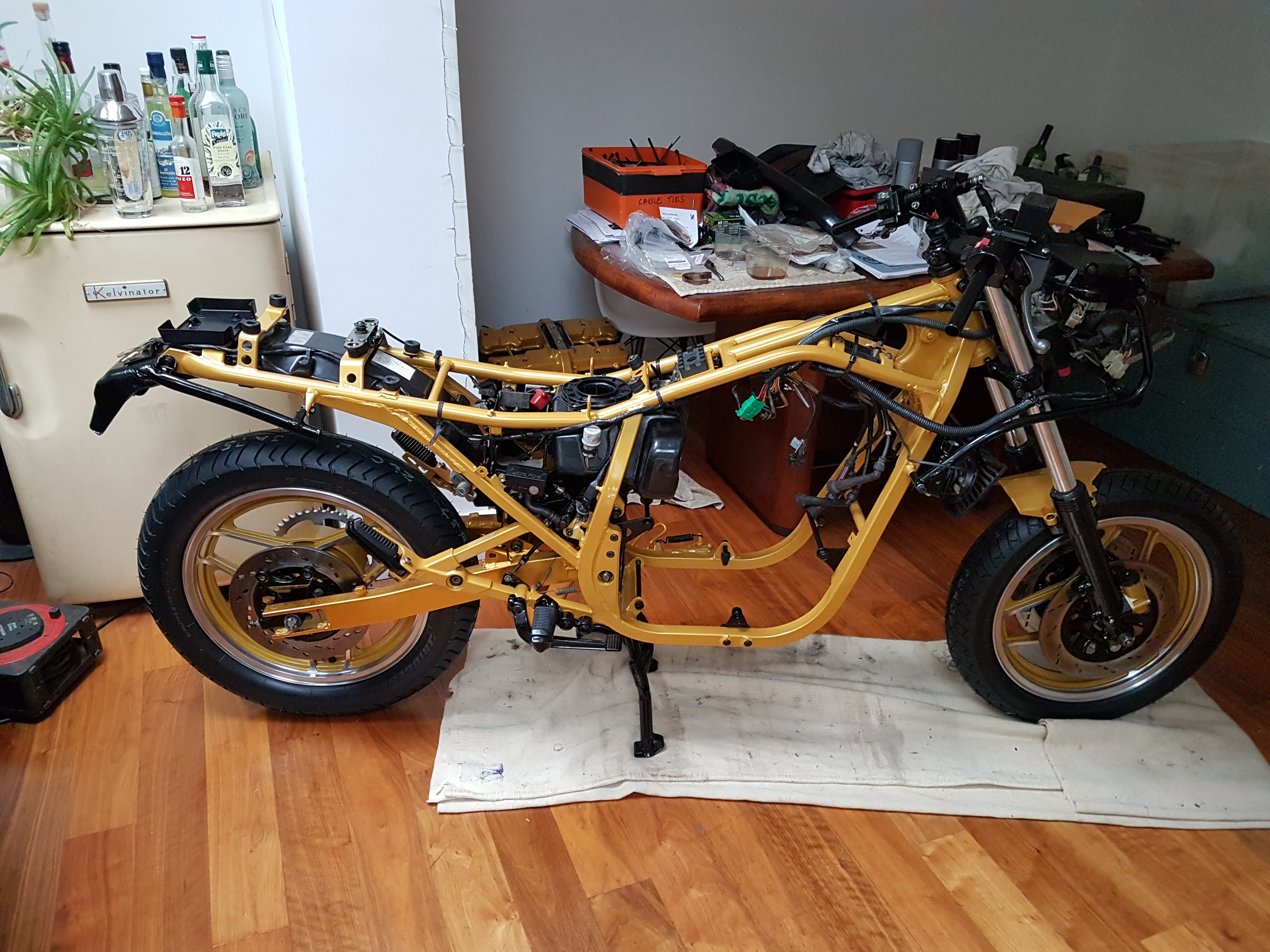 In a couple of months, when I finish restoring my 1984 pop-up, my 1983 pop-up will need to be sold. I don't think I've seen a restored one for sale, so I've no idea how much I should be looking for. The frame and engine covers are powder coated in gold and the wheels are painted to match. All the black parts have been powder coated and the swing arm was re-anodised. It's a Jap import and is generally very original (the rear shock still adjusts!) The only major mods are braided brake and clutch hoses and the Marving exhaust, to the original pattern. It has 40k kms (25k miles) on the clock, but the engine was rebuilt with the top end from a lower mileage engine (about 20k miles, if I remember).