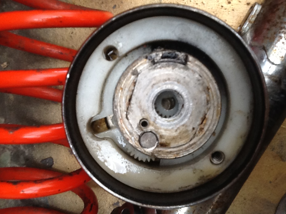 The damper rod is hollow to allow oil to pass up and the rebound adjuster has a rod that passes through held in position by ball bearings and springs. A nylon cog moves the inner body to the correct position .