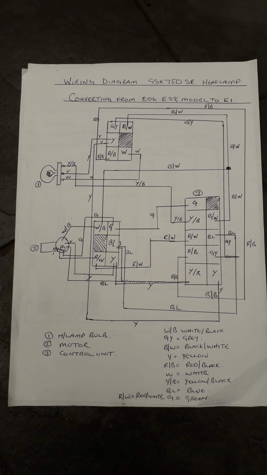 Also included in a wiring diagram of the loom to control unit and how to convert the uncommon market version into the usual market version.