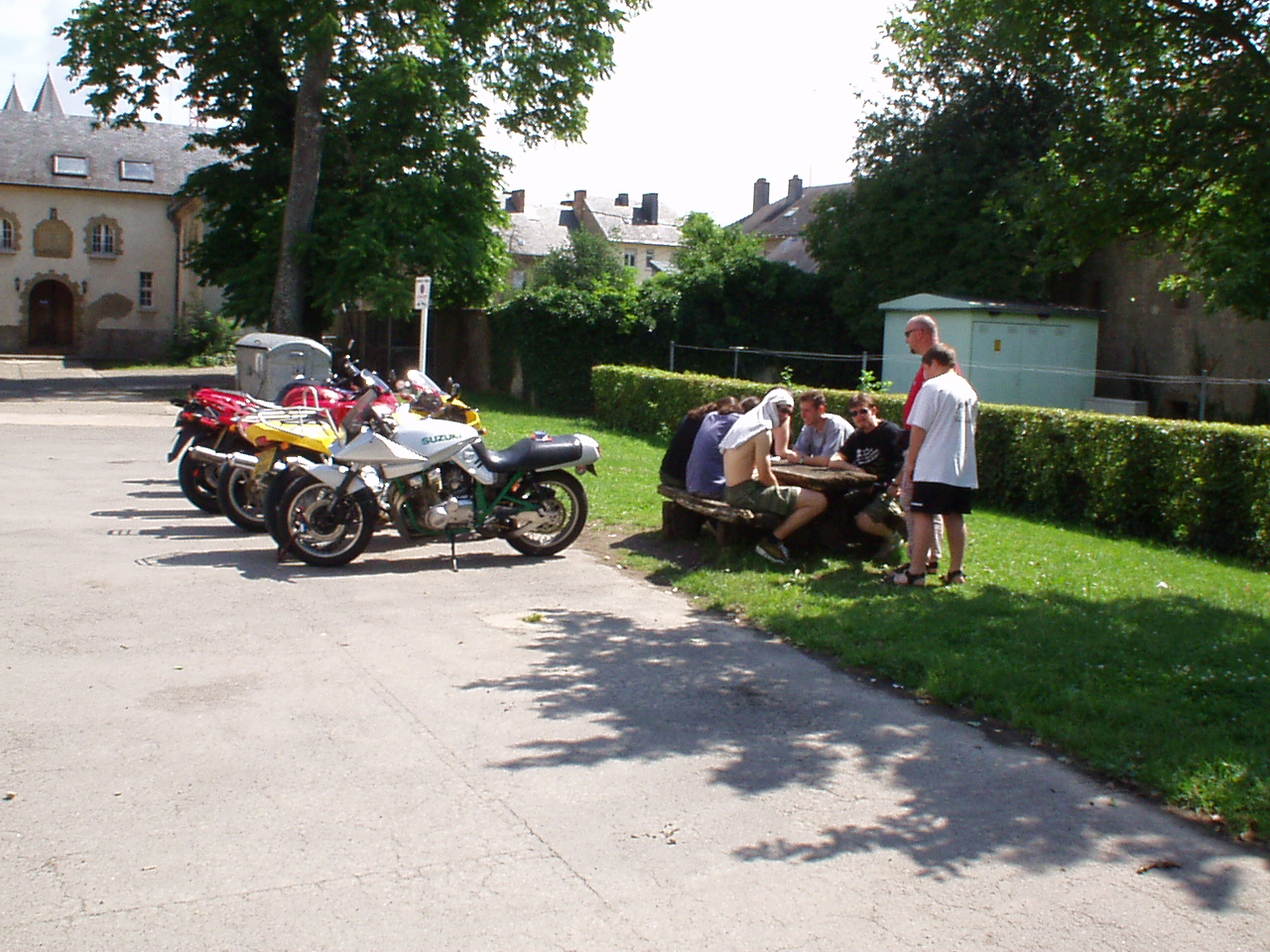 Lock Down in Luxembourg 2001 :- Whilst trying to find a garage to repair a Yamaha TDM final drive sprocket, We got locked out of the hostel so no bike gear for the day. Triumph 595 still owned so not breaking the rules Blix