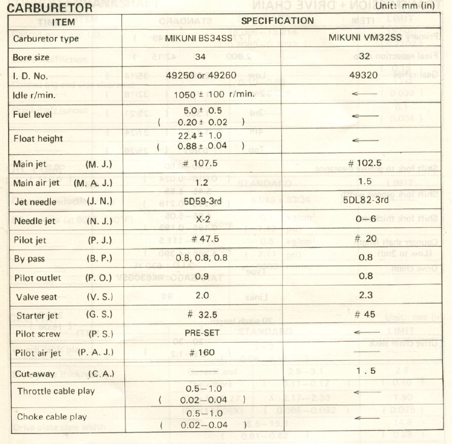 I've had a look at my carbs and the numbers on them don't seem to relate to the SZ carbs, so perhaps the 1987 SAE had different CV's fitted. The bike is really original so I'd be surprised if they had been changed but I've been wrong many times before. I'll try and upload some pictures of the bike and carbs.