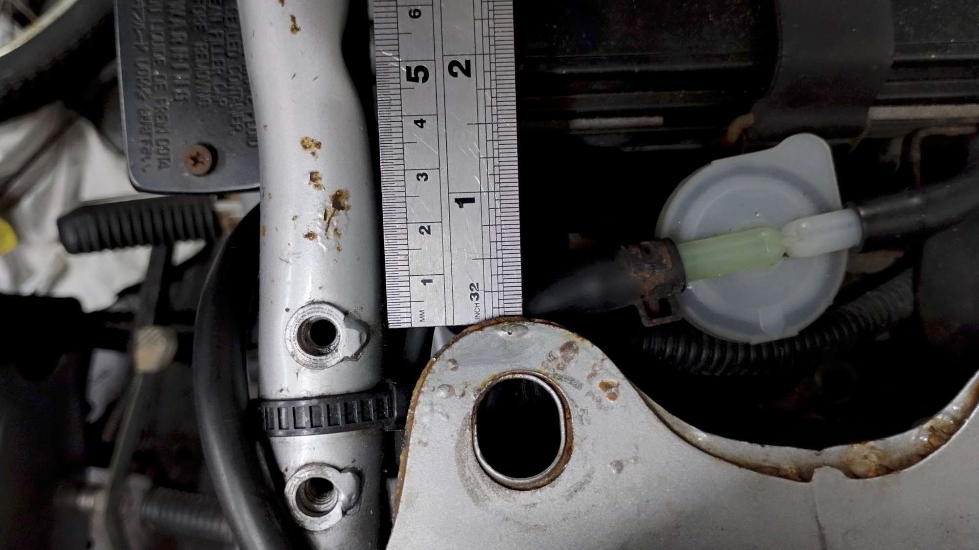 First thing I’ve noticed is the foot rest frame triangles, LHS upper tube is a gentle convex whilst lower which holds the gear leaver mount is flat. Over to the RHS the upper triangular tube is concave slightly therefore doesn’t match. The lower RHS is concave too ever so slightly as that can only be answered by saying it’s had pressure on the footrest from a gentle fall. It’s valuable infor!!