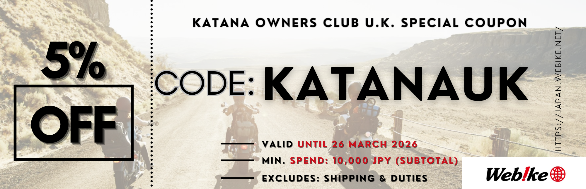 We’re excited to offer a special coupon exclusively for members of this forum, which can be used on the Webike Japan website!