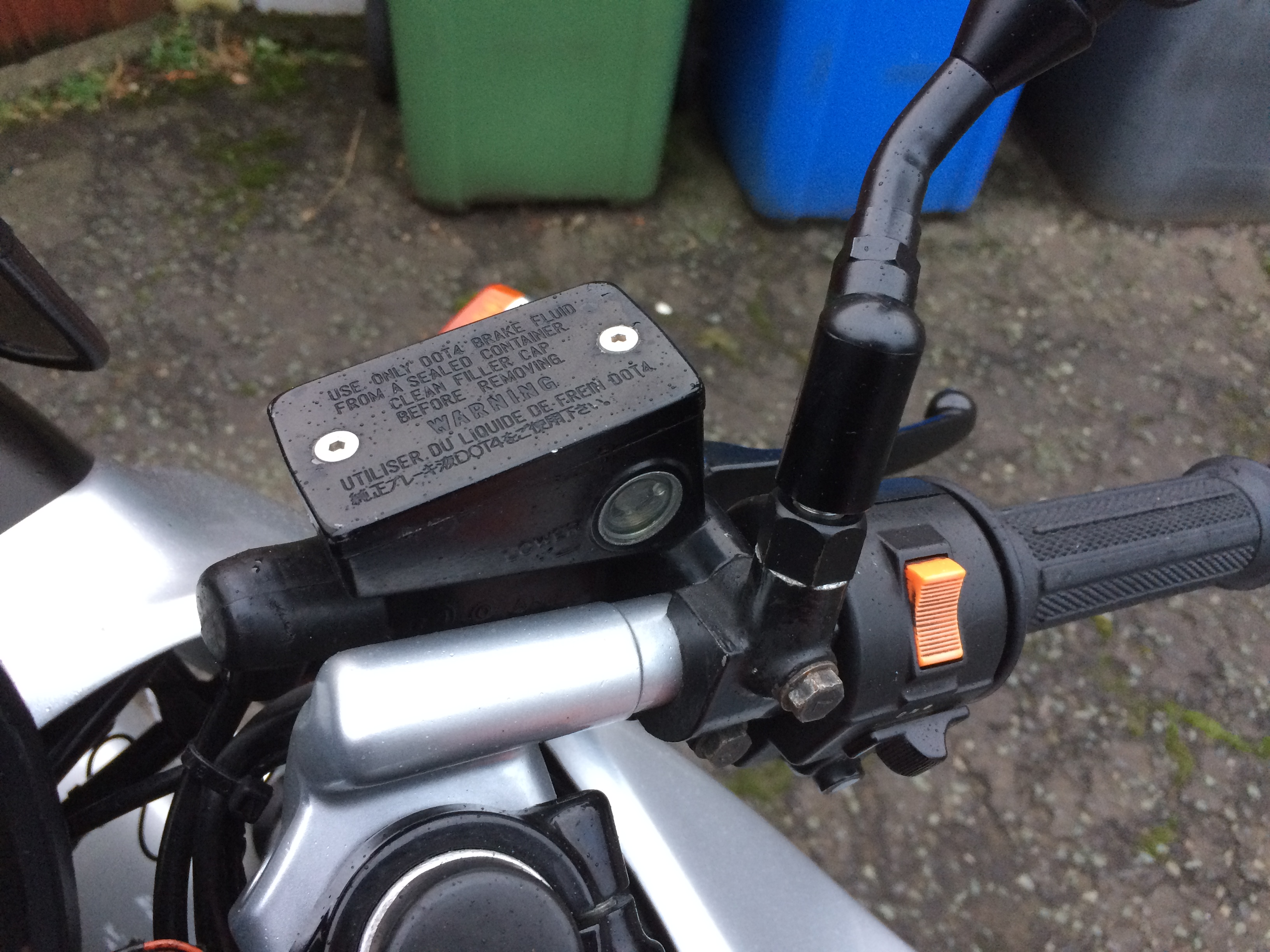 I think that my bike has a GSXR1100 master cylinder fitted in place of the original (see pic) I’m having a problem with the lever travel and I’m wondering if the ratios are all wrong with the standard calipers? I’ve bled the system and there’s no air in there at all. If I really pull the lever hard the lever comes within 1/2inch of the bars and as I use two finger braking the lever traps my other two between lever and bar even with the span adjuster at maximum? Has anyone else used the gixxer m/cylinder with standard calipers and had the same problem?