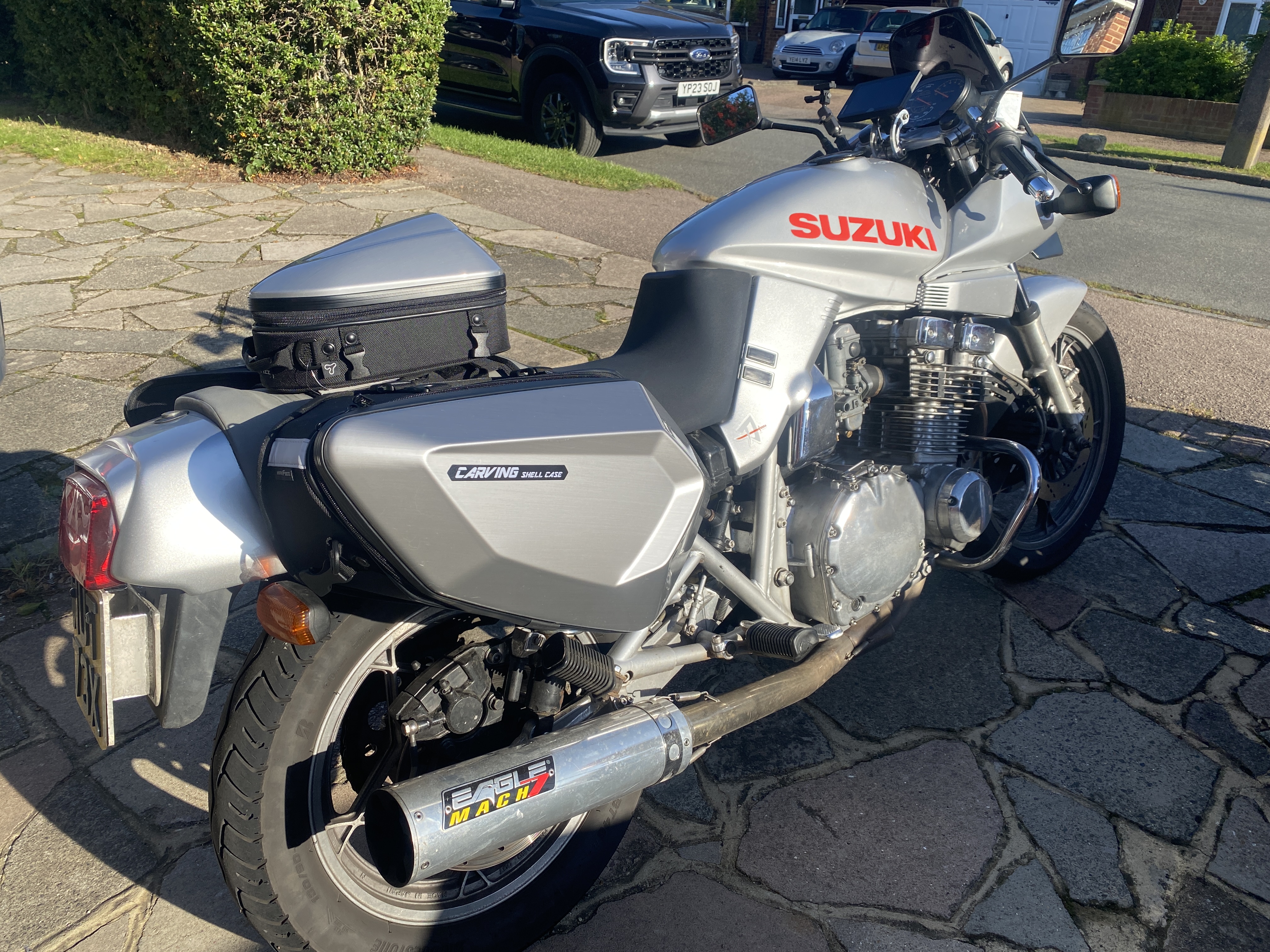 My jacket is waterproof and I do have some leggings, but in summer I tend to wear mesh jacket and not the leggings, but for arctic circle will be essential and now I have good panniers for the Katana, so more storage.