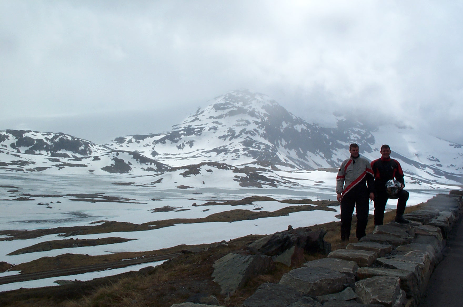 Anyway, being over 20 years ago and not having the money to buy anything particularly special, I just had what I rode in, in the UK - a Spada textile jacket, leather trousers, leather boots (not that water resistant let alone waterproof!) and leather summer gloves. I took some thermals for under the leather trousers that came from an Army and Navy store and just my normal fleecy and t-shirt under the jacket. I can't remember feeling like we needed more. Looking at the photos I have, there are a lot where I'm wearing an all-in-one (supposedly water proof) over suit!