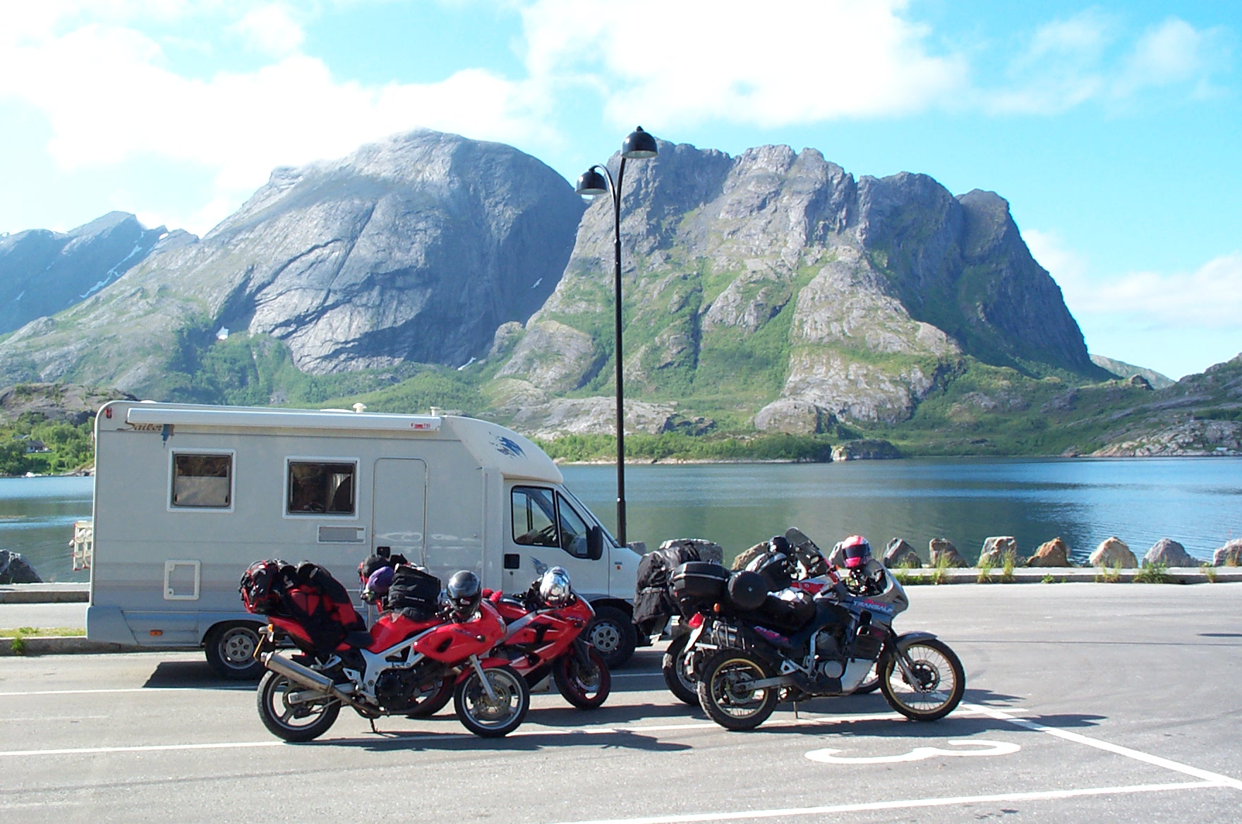 Back in 2003 my brother and I rode up above the arctic circle in Norway, I was on a SV650S. Luckily for us there was a Newcastle - Bergen ferry then which we took, cutting out lots of road miles getting there. We did go in June as the plan was to camp above the arctic circle on the longest day for the midnight sun (it was cloudy in the end!). We went as far up as just north of the Svartisen Glacier (Halsa).