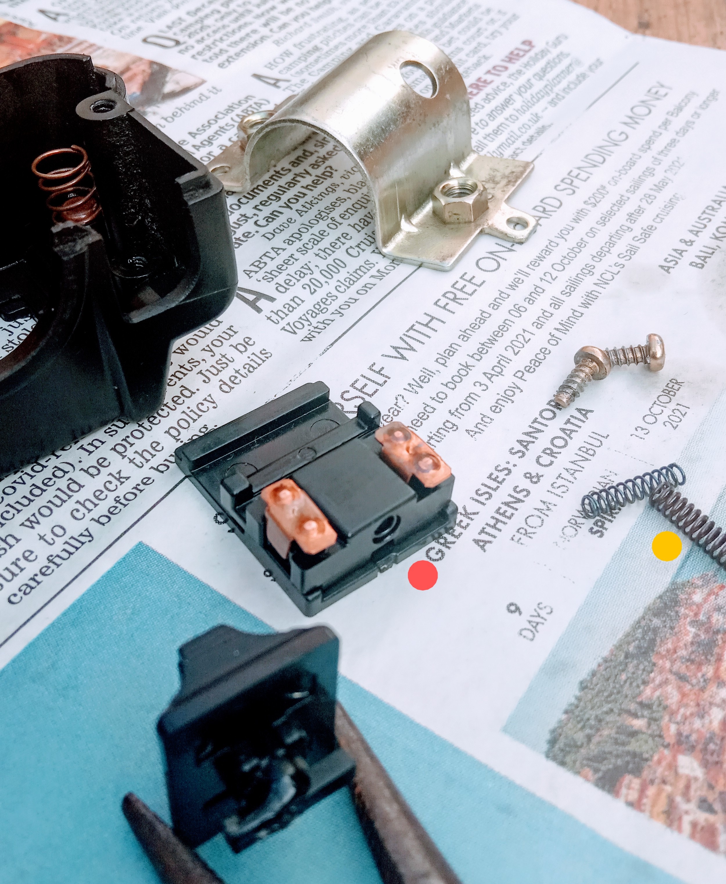 I have 2 springs which go somewhere but have no idea where (yellow dot). Also in pic (red dot) is a small spring in the little hole.