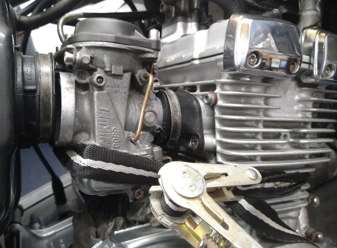 I use a ratchet strap to help ease mine in (with help from some rubber grease on the inlets), holds them in place and you can push in one end without the other popping out. Image below is from my 250 but just used the same process on my 1100 (twice as after cleaning the pilot jets I had to take off again to replace the needle valves - why didn't I bench test!)