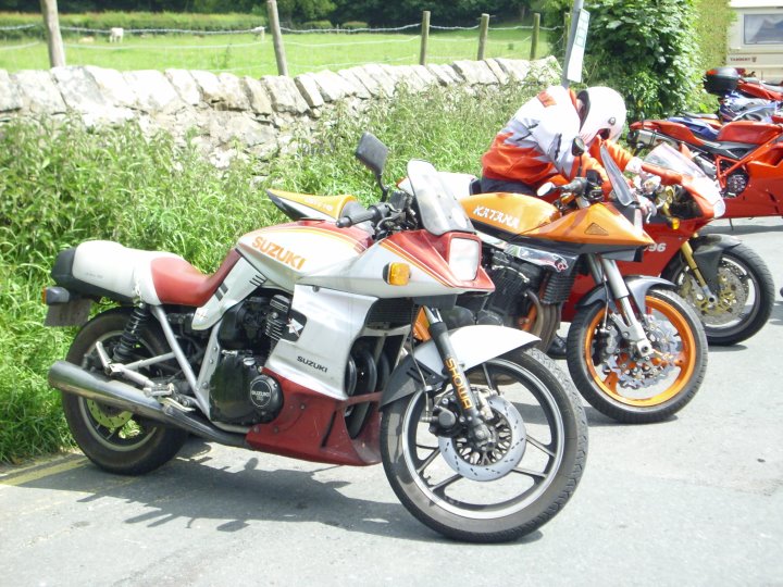 that lower section in the last pic is the same fairing as in the first, the vents and louvres in it are the same. the only difference is that the bit at the back where it angles in over the carbs has been cut away in the first one shown, you can even see where it should be cut on the second one. i think that it looks worse on the sd with the two colour option than it does on the solidly silver sz with its silver engine.