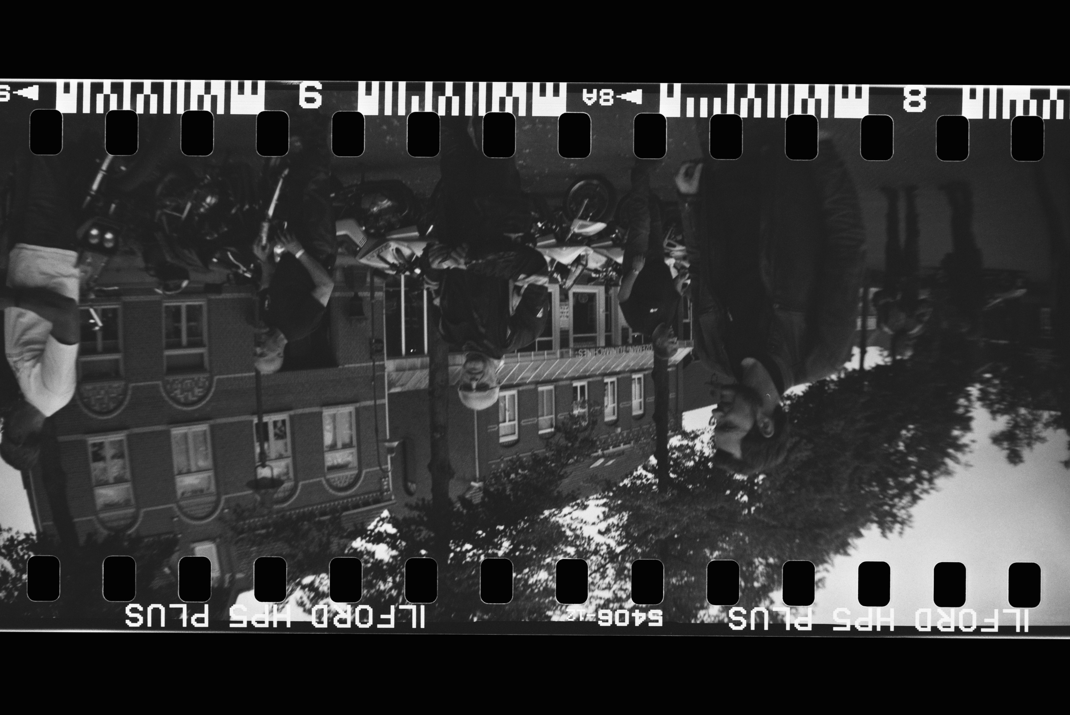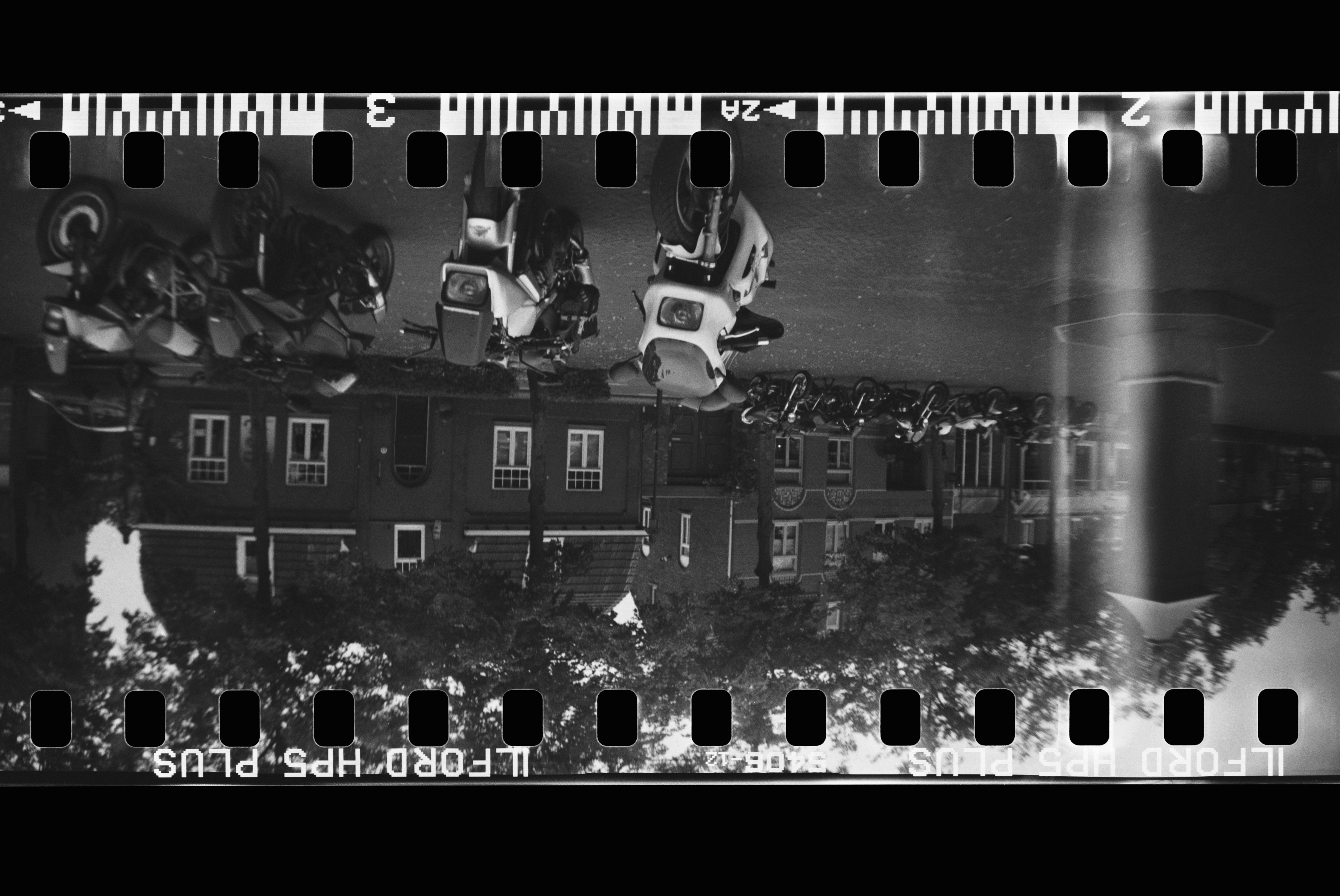 Well it’s was a 35mm wide angle thing with absolutely no fancy whistles and bells, indeed even winding the film on was fully manumatic. So if you didn’t know, you can make multiple exposures, which the guy taking photos of the post awards assembly did. Also the film was monochrome, just because. And it also exposes the full frame so you get the sprocket holes. Supposed to be arty.